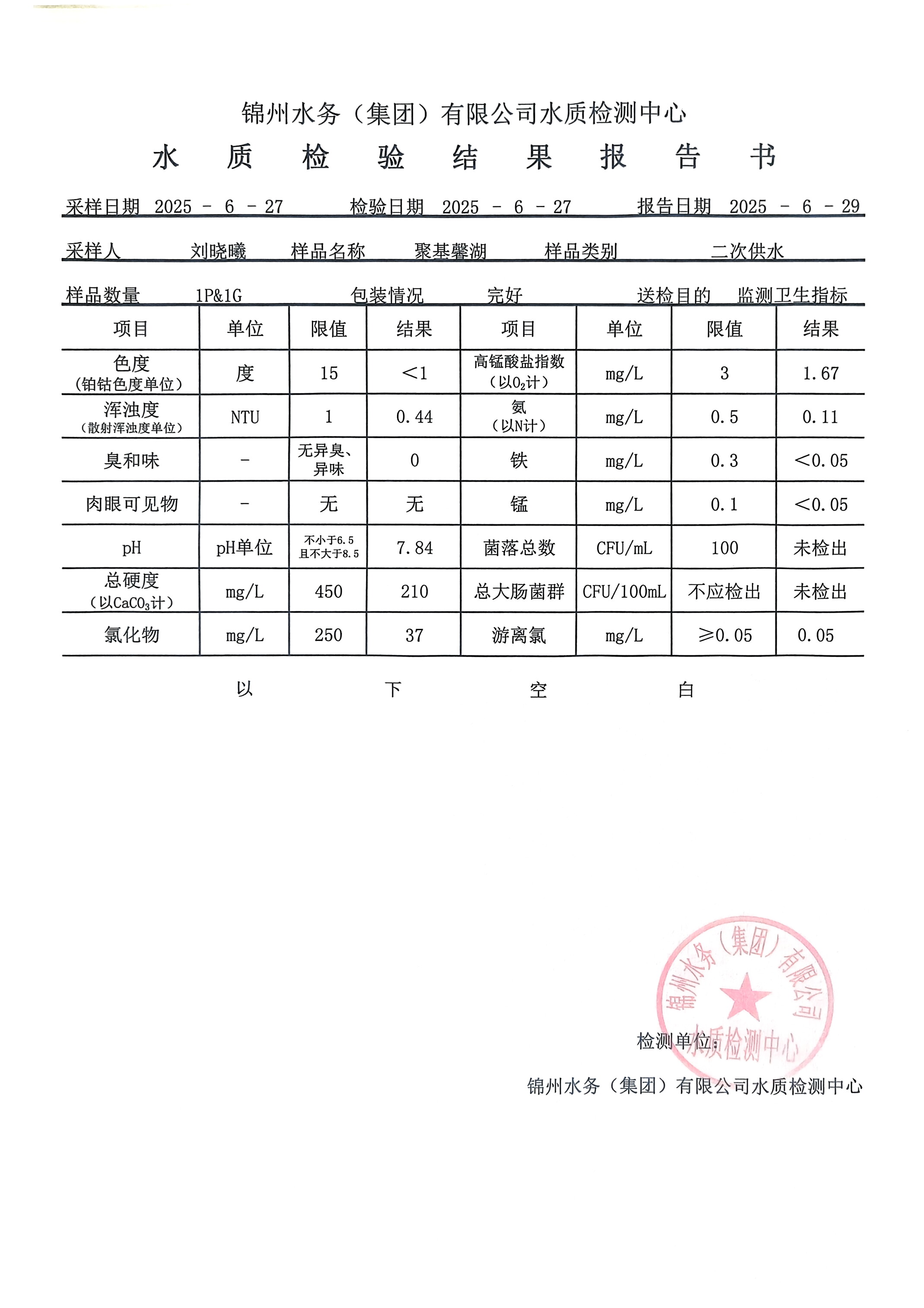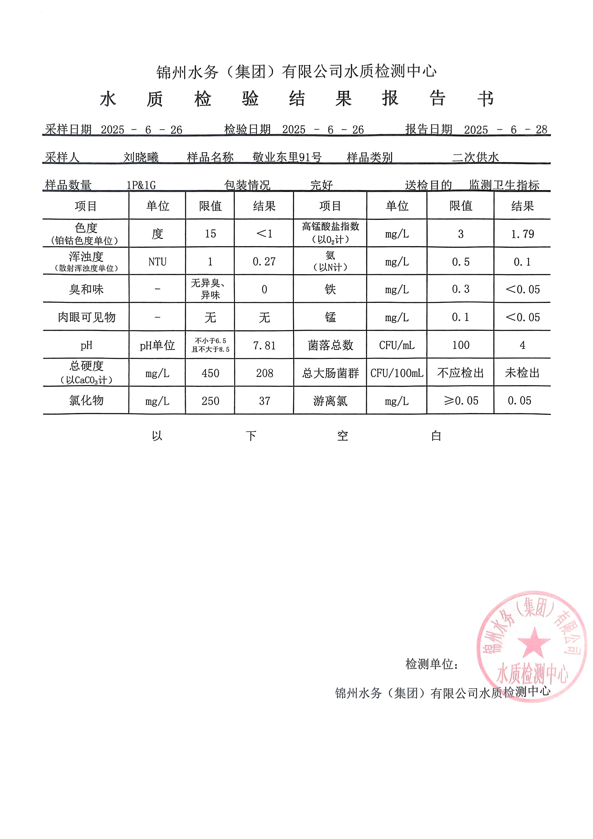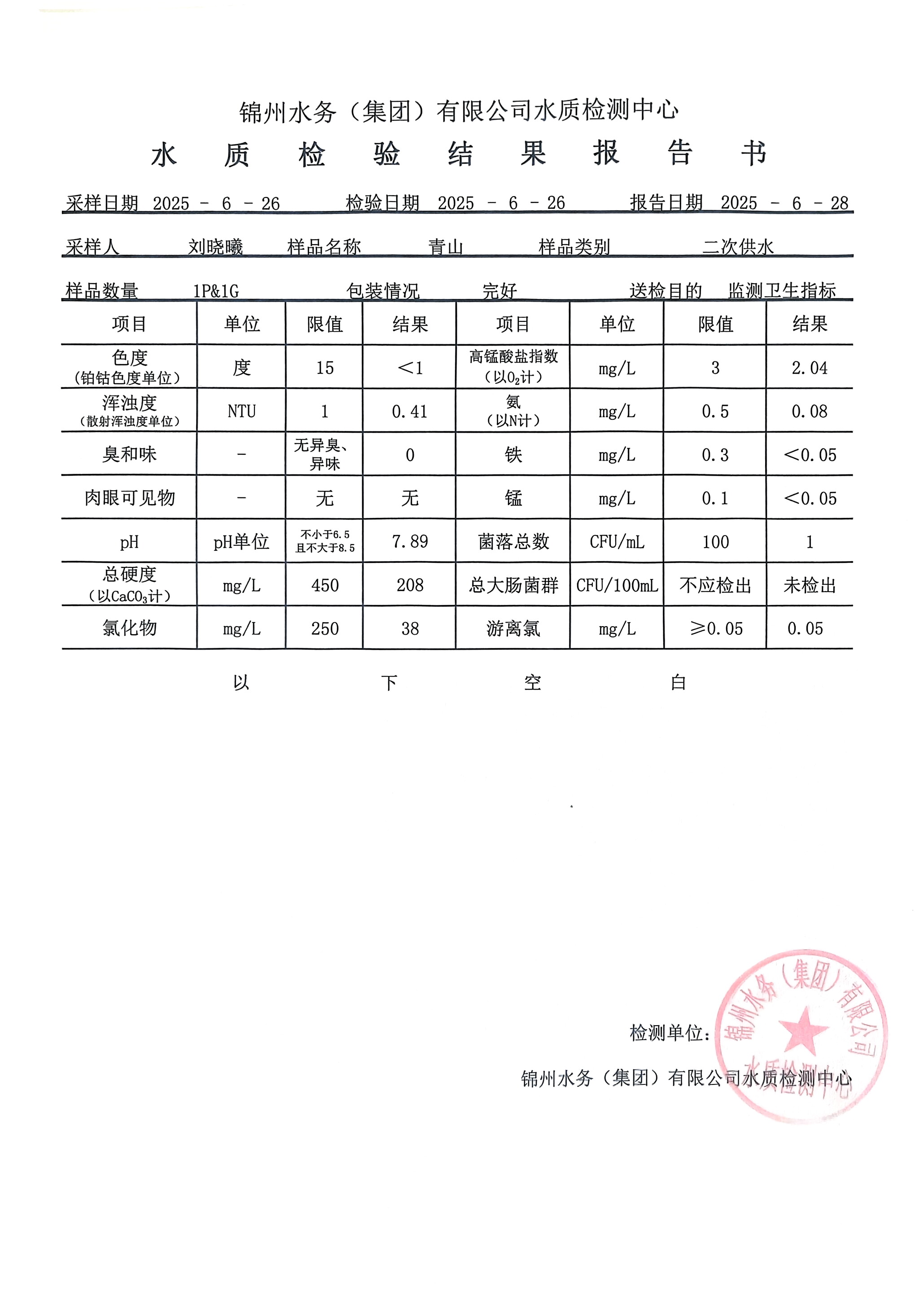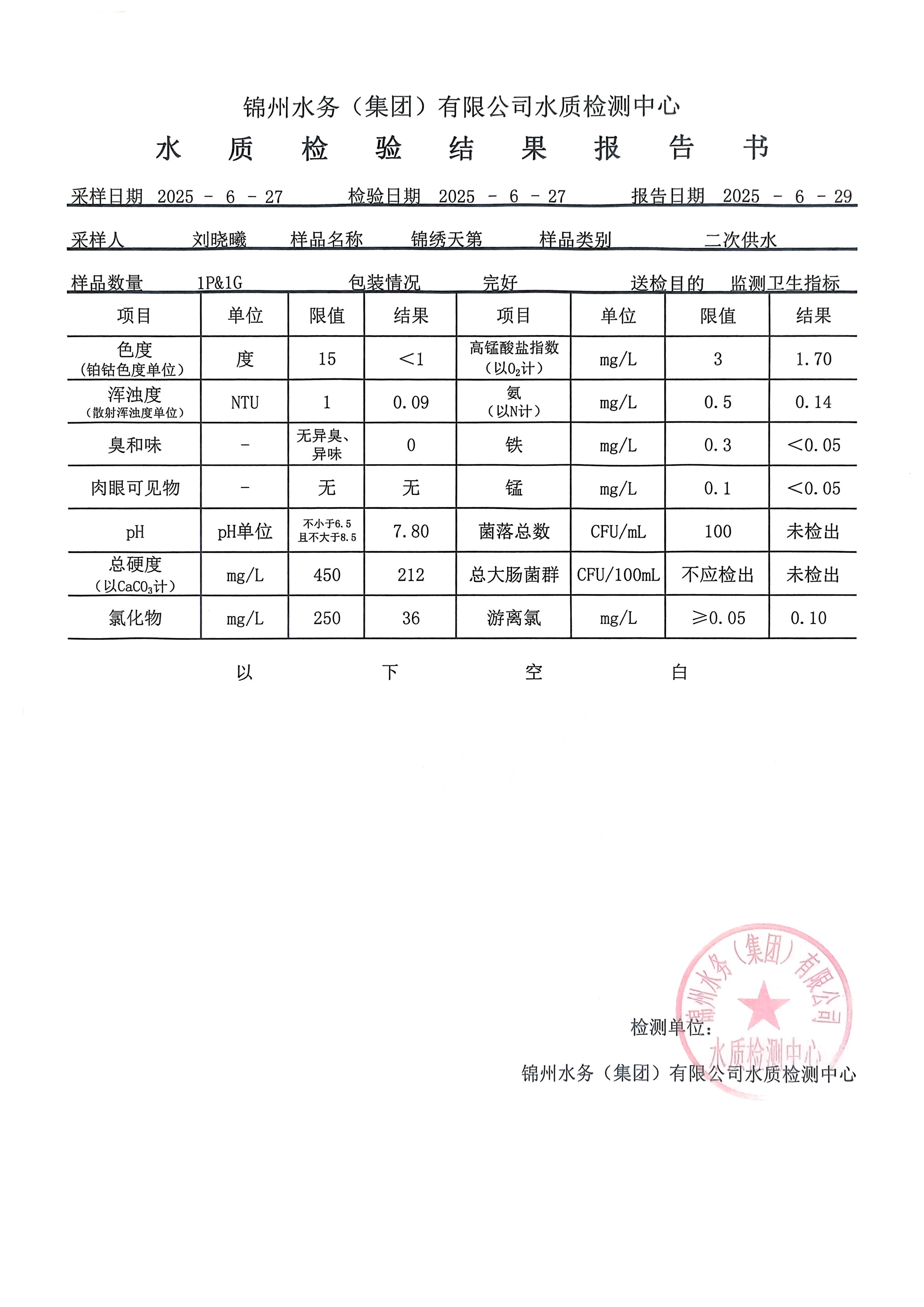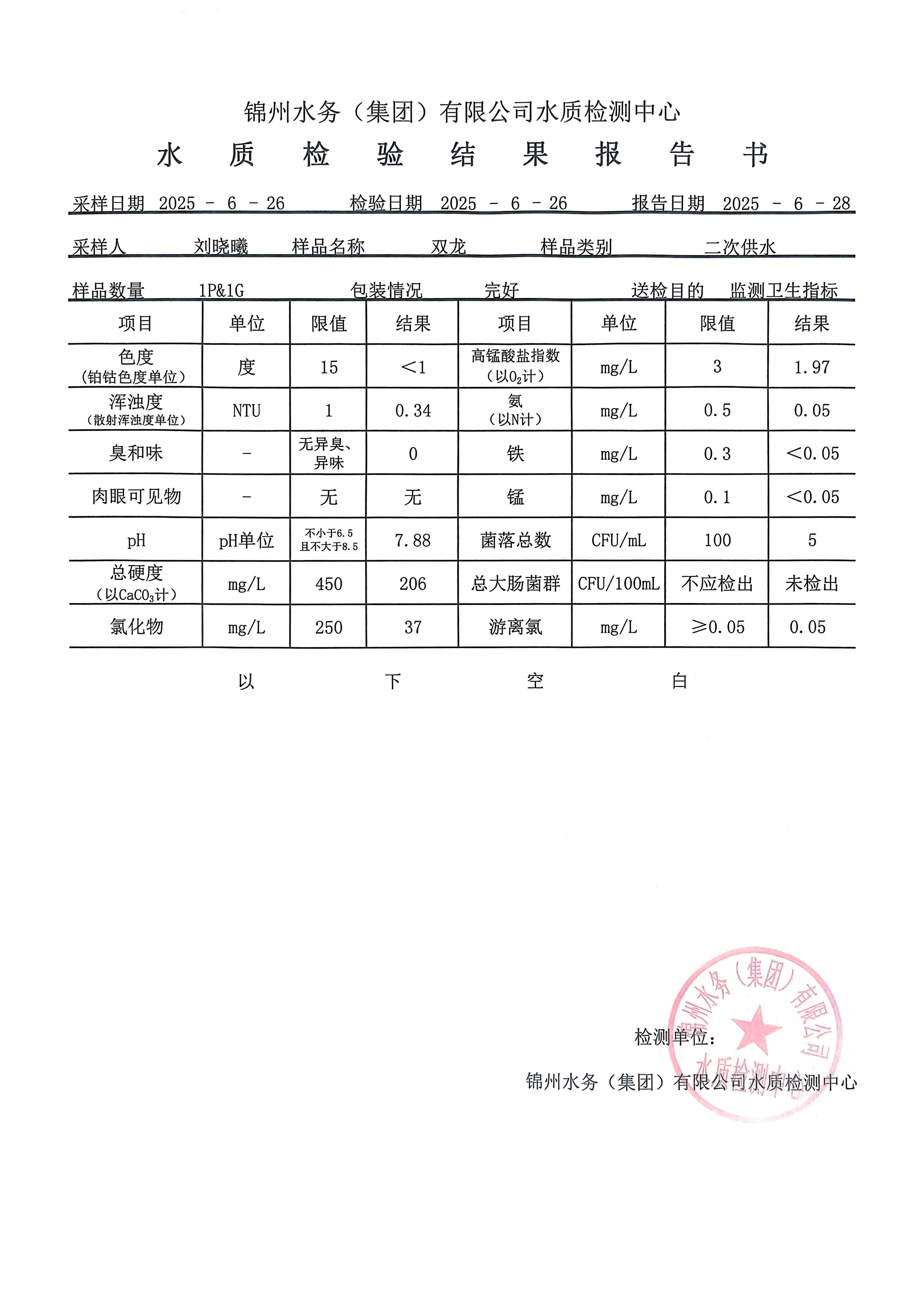 2025年6月28日—7月4日 二次供水检测报告水质报告