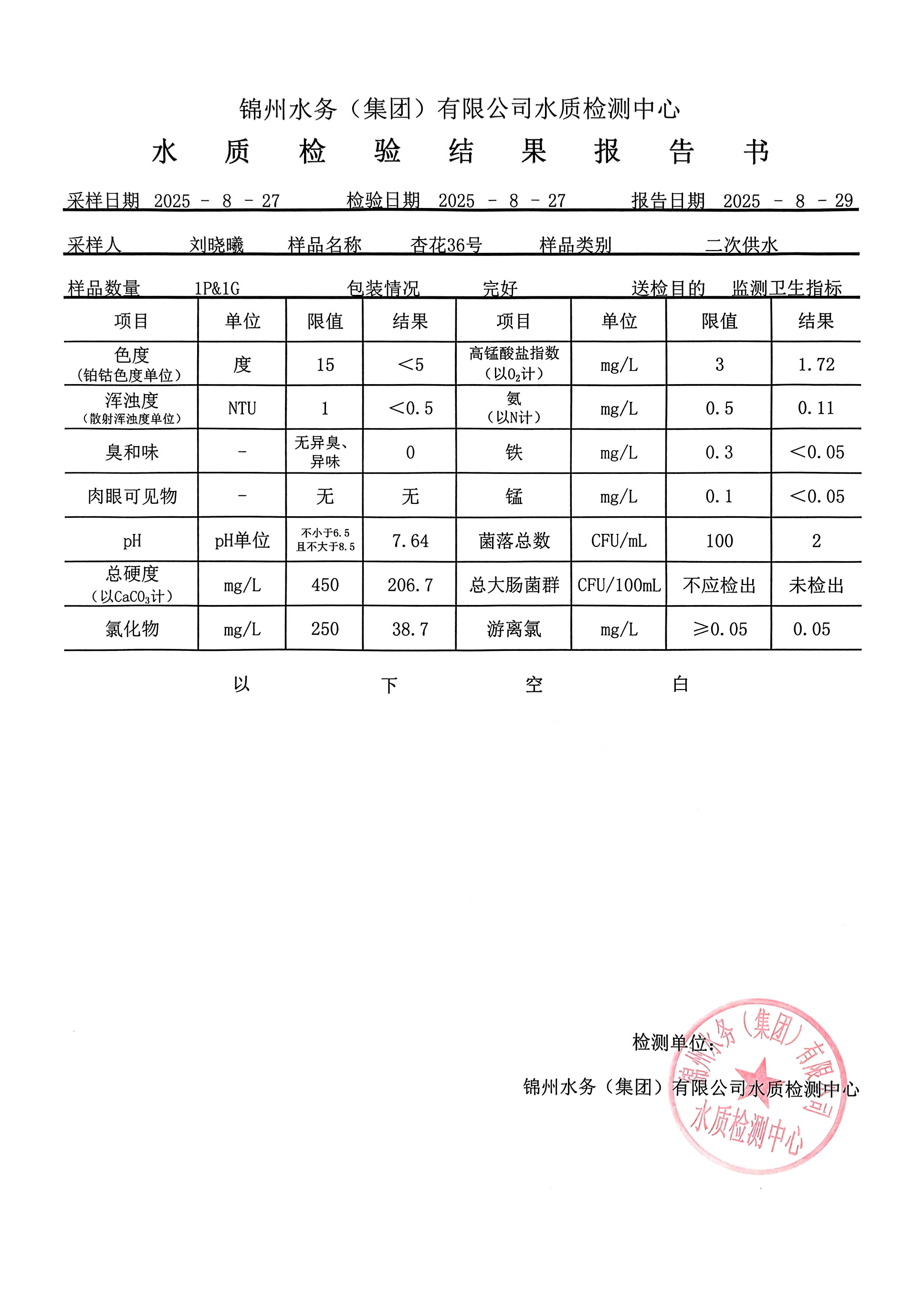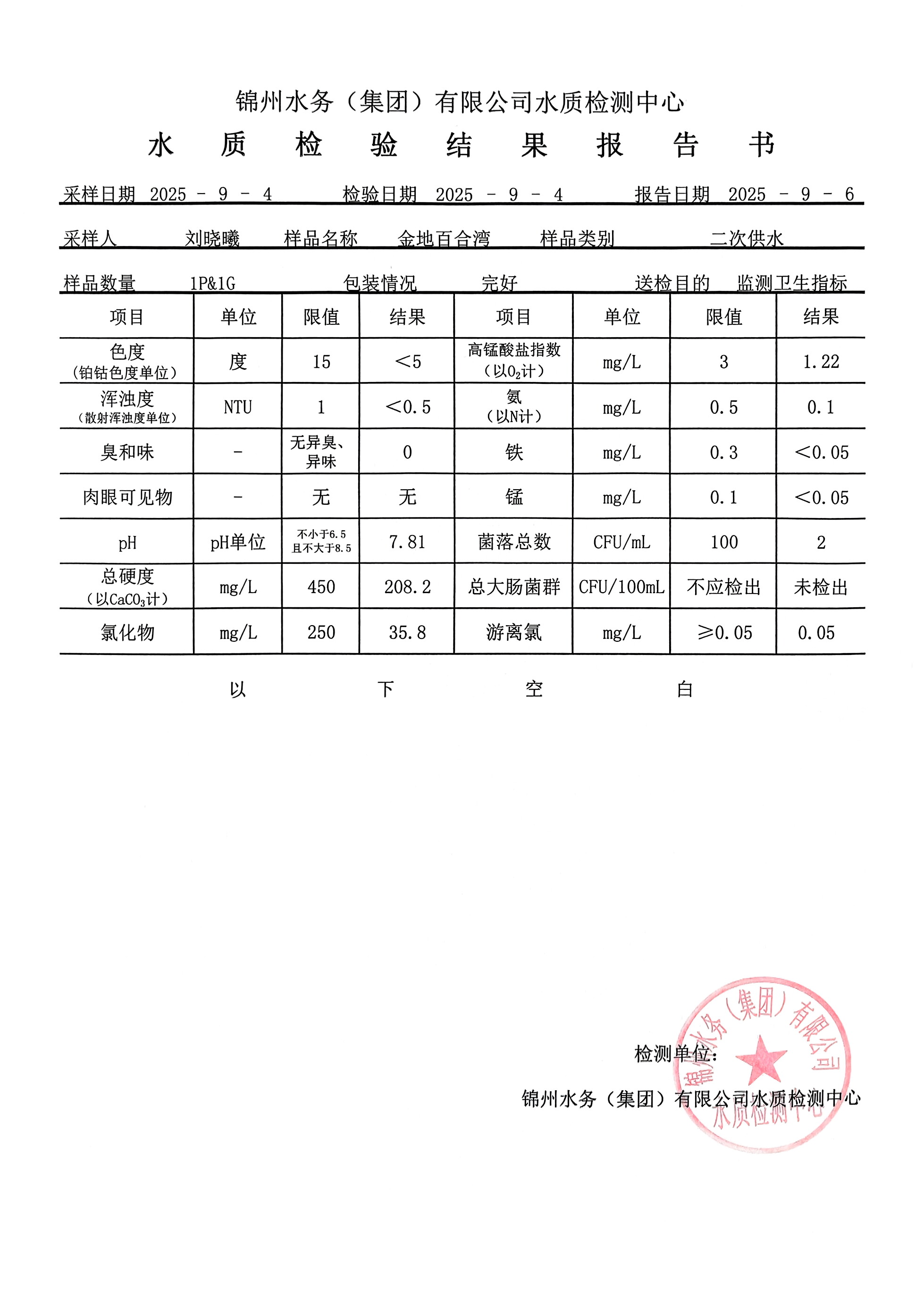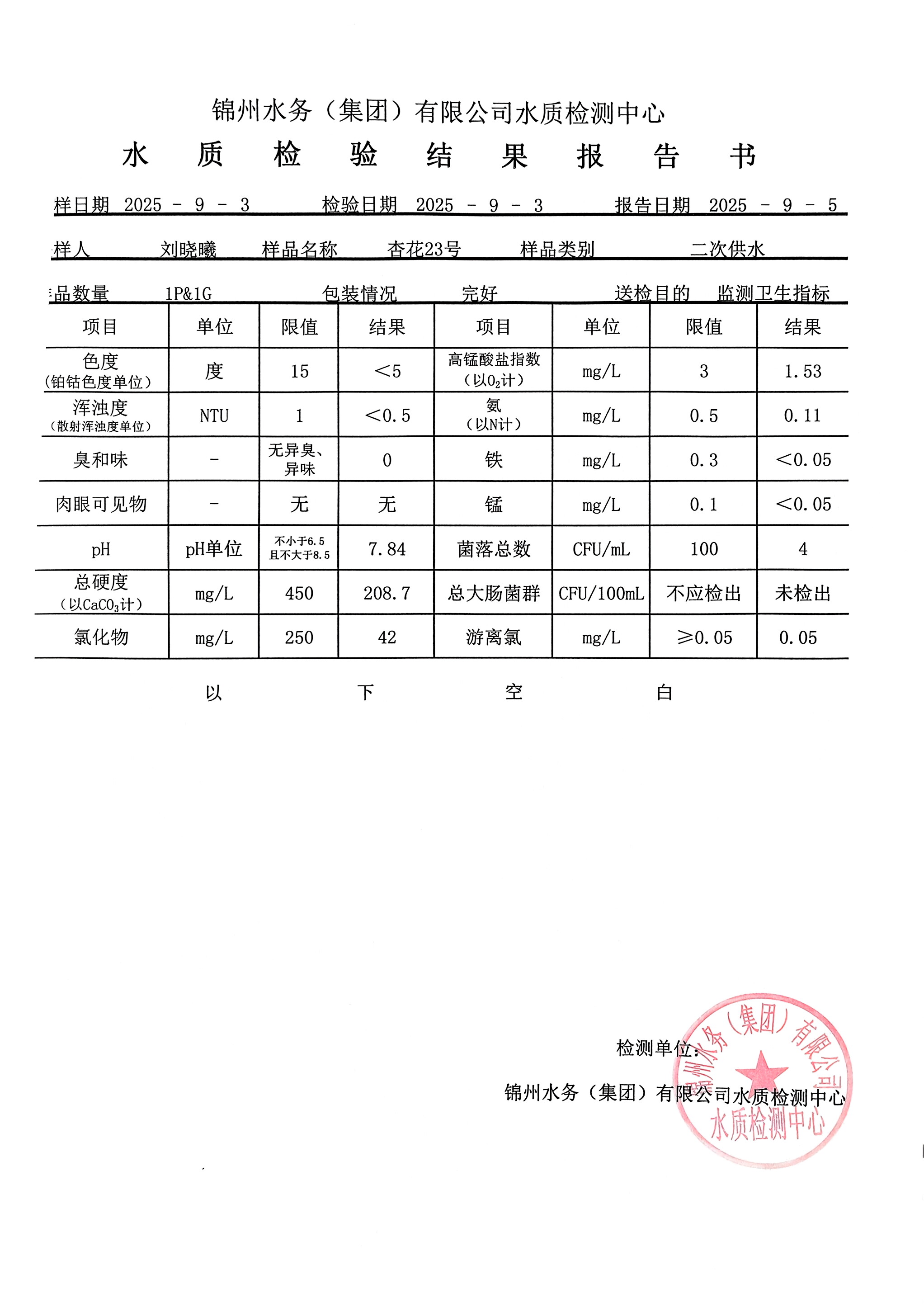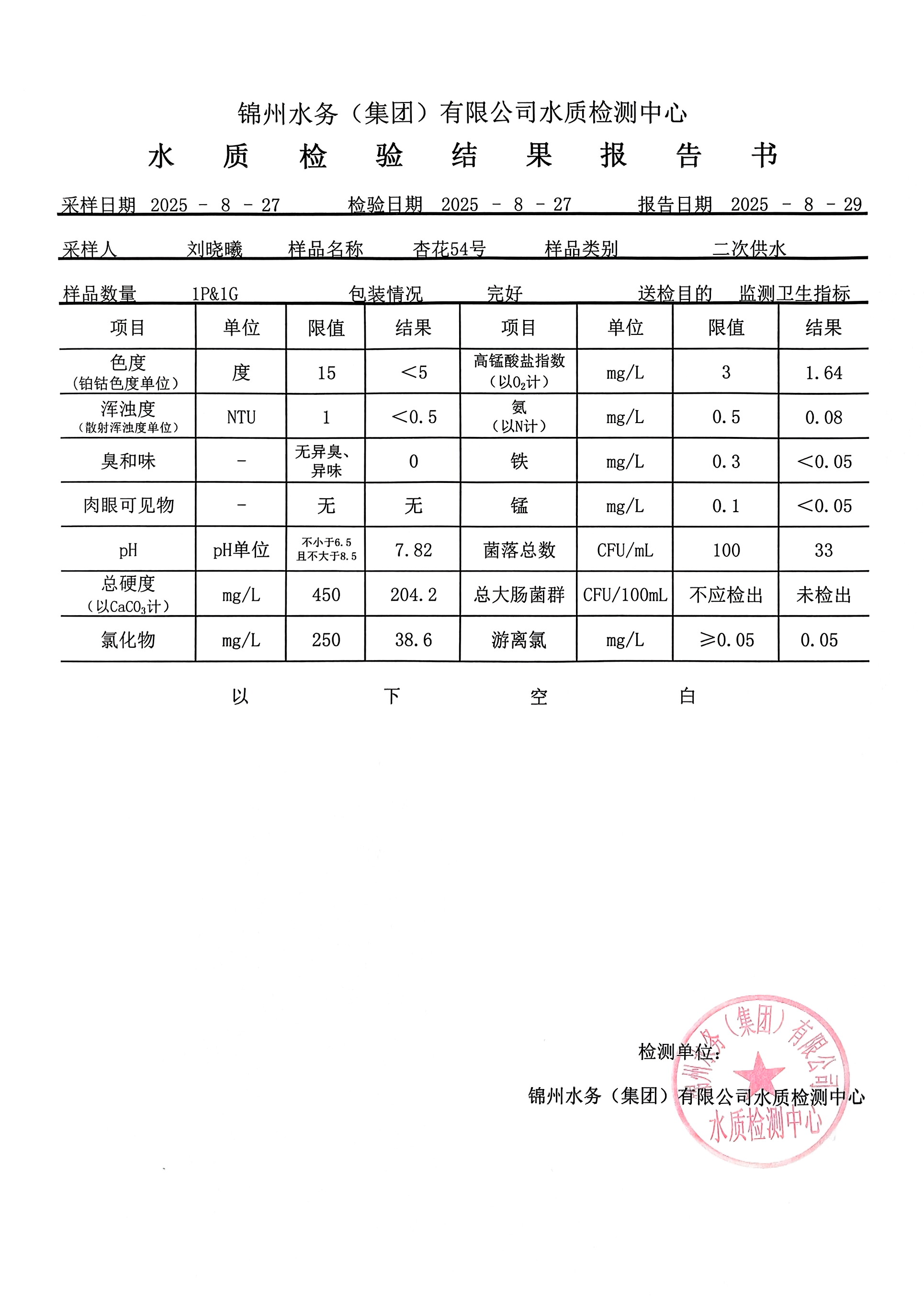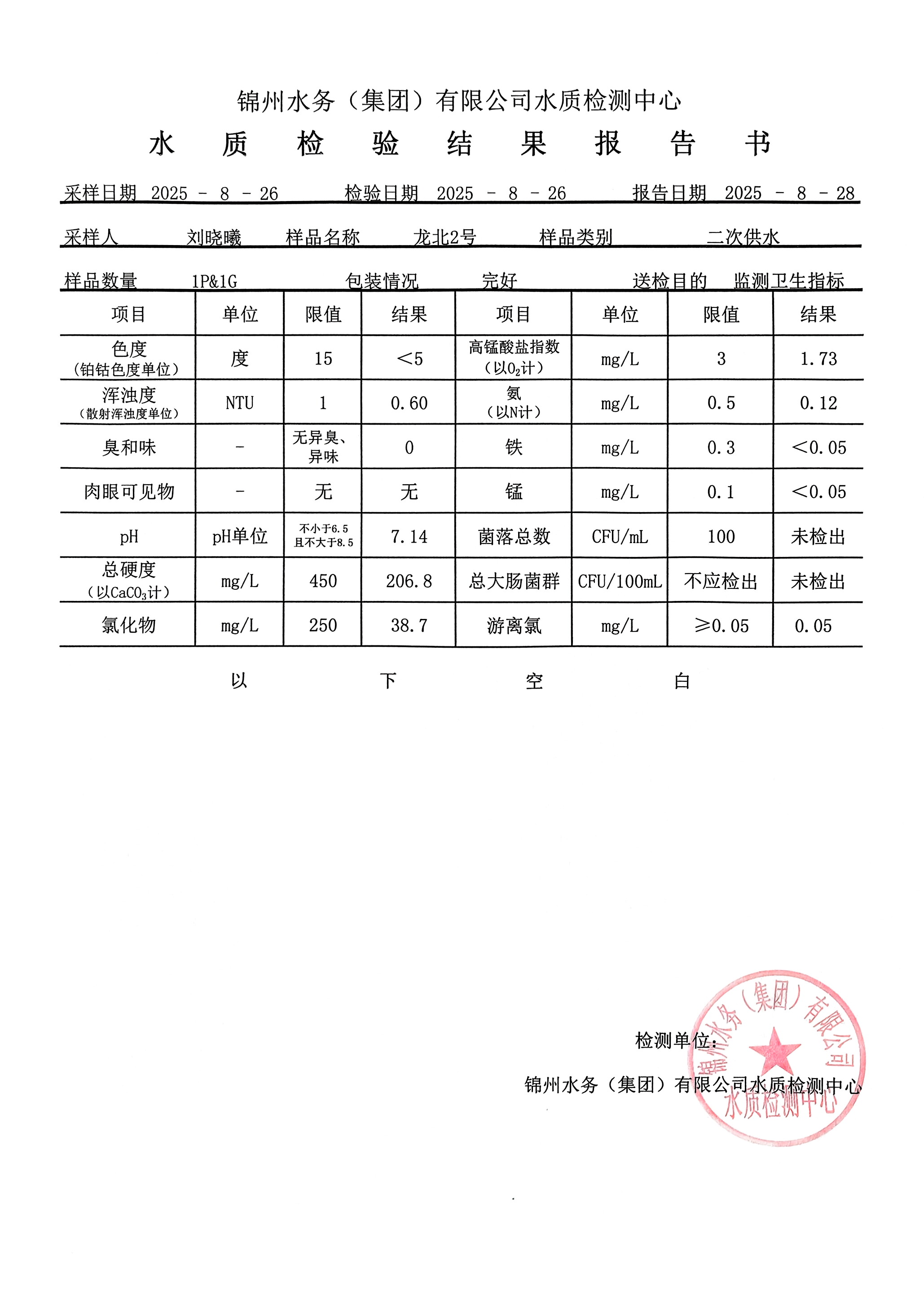 2025年8月28日—9月6日 二次供水检测报告水质报告