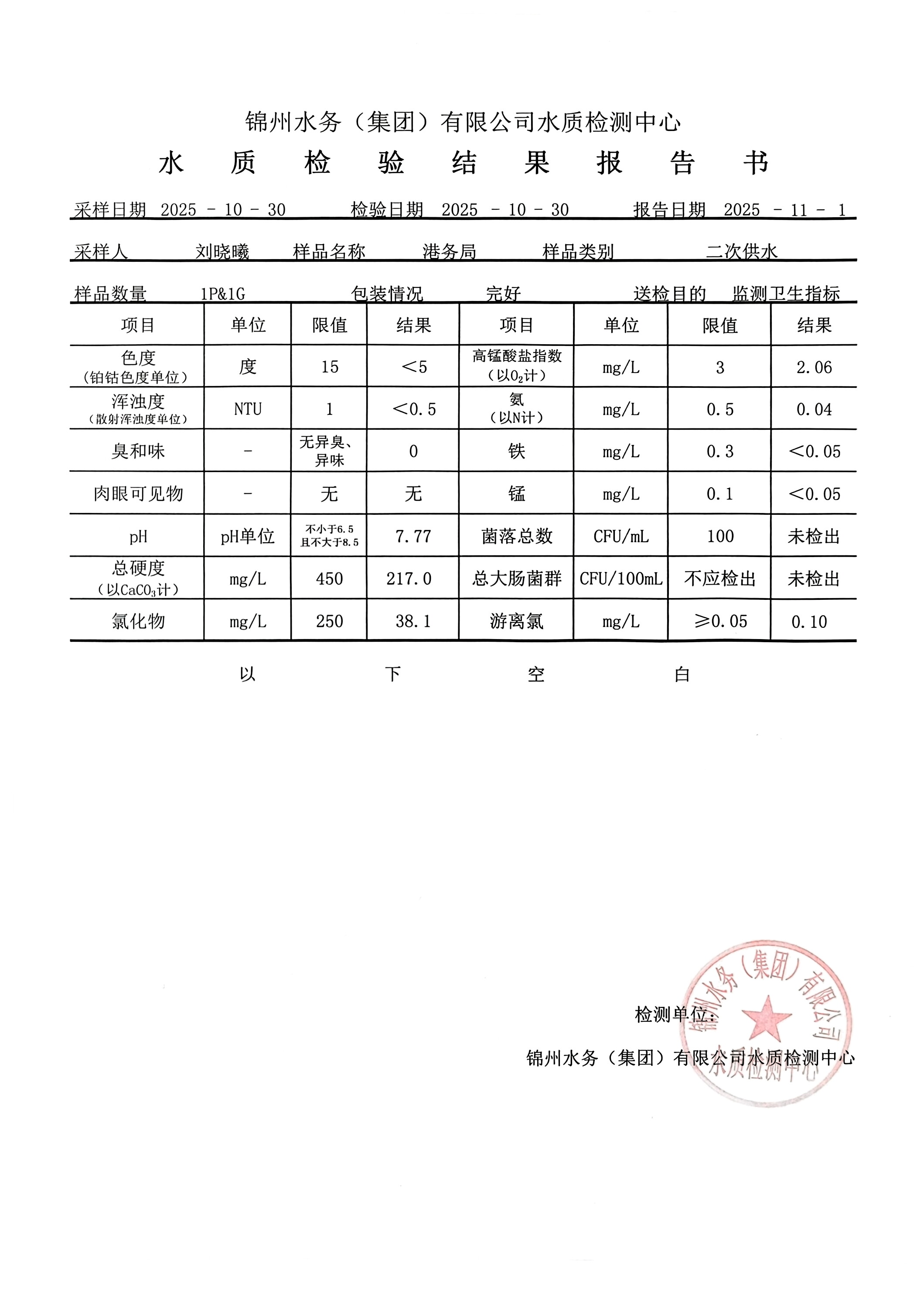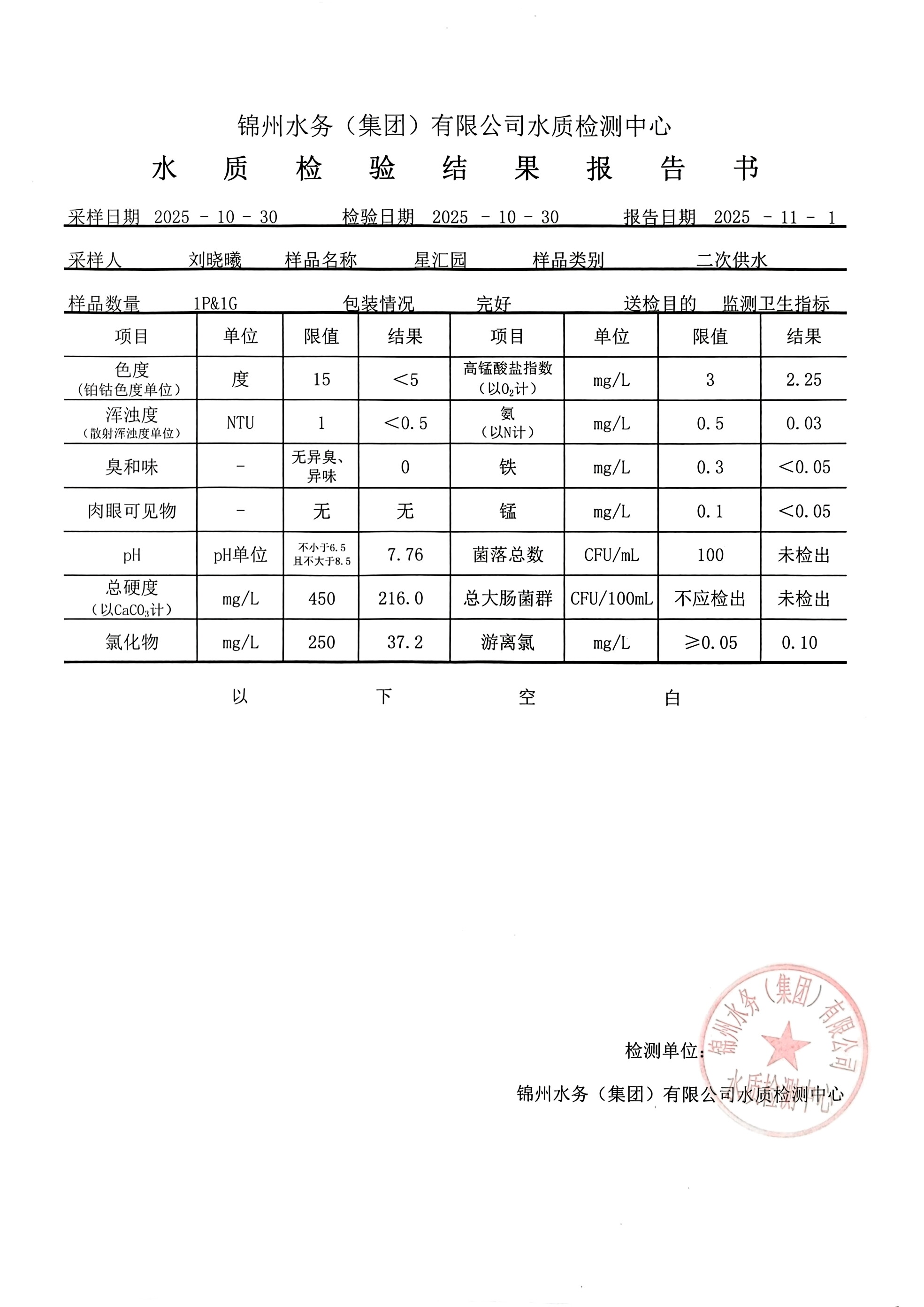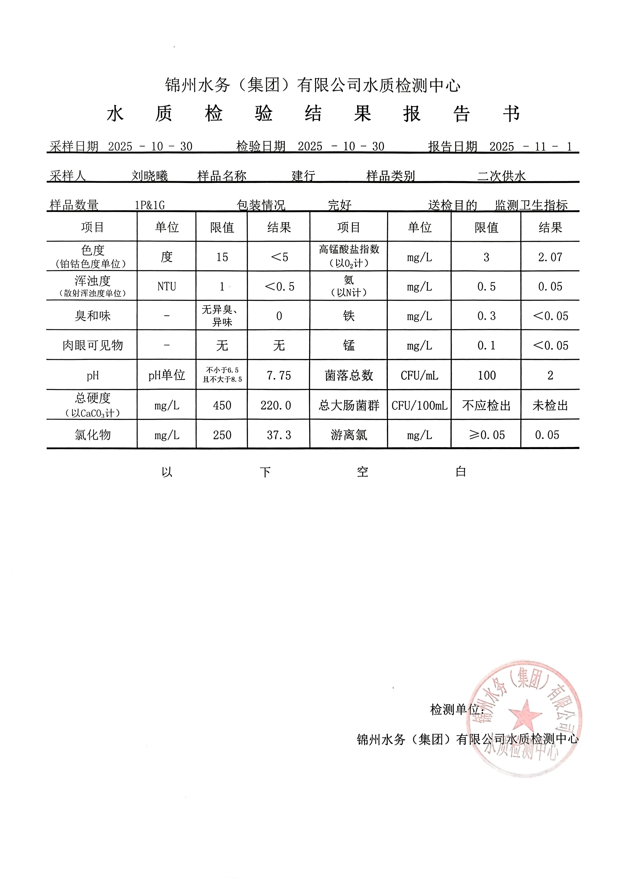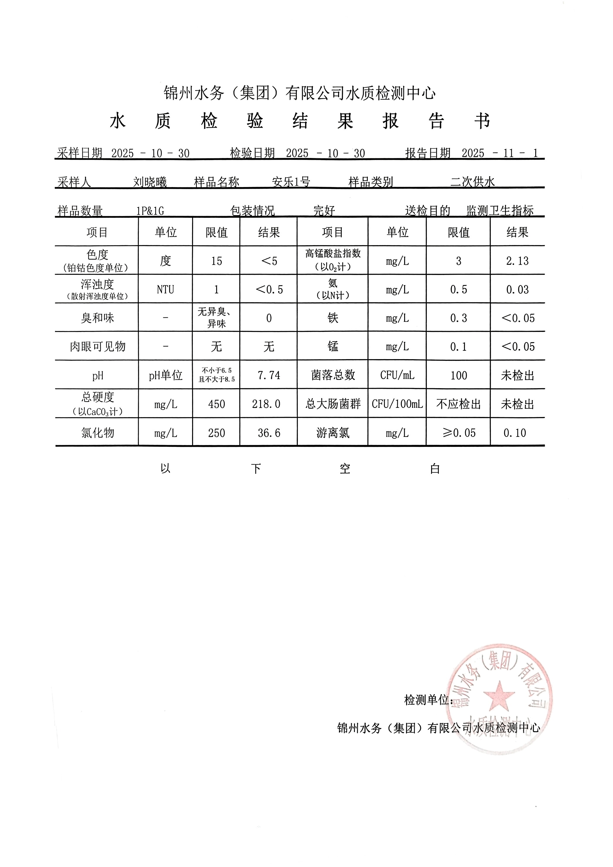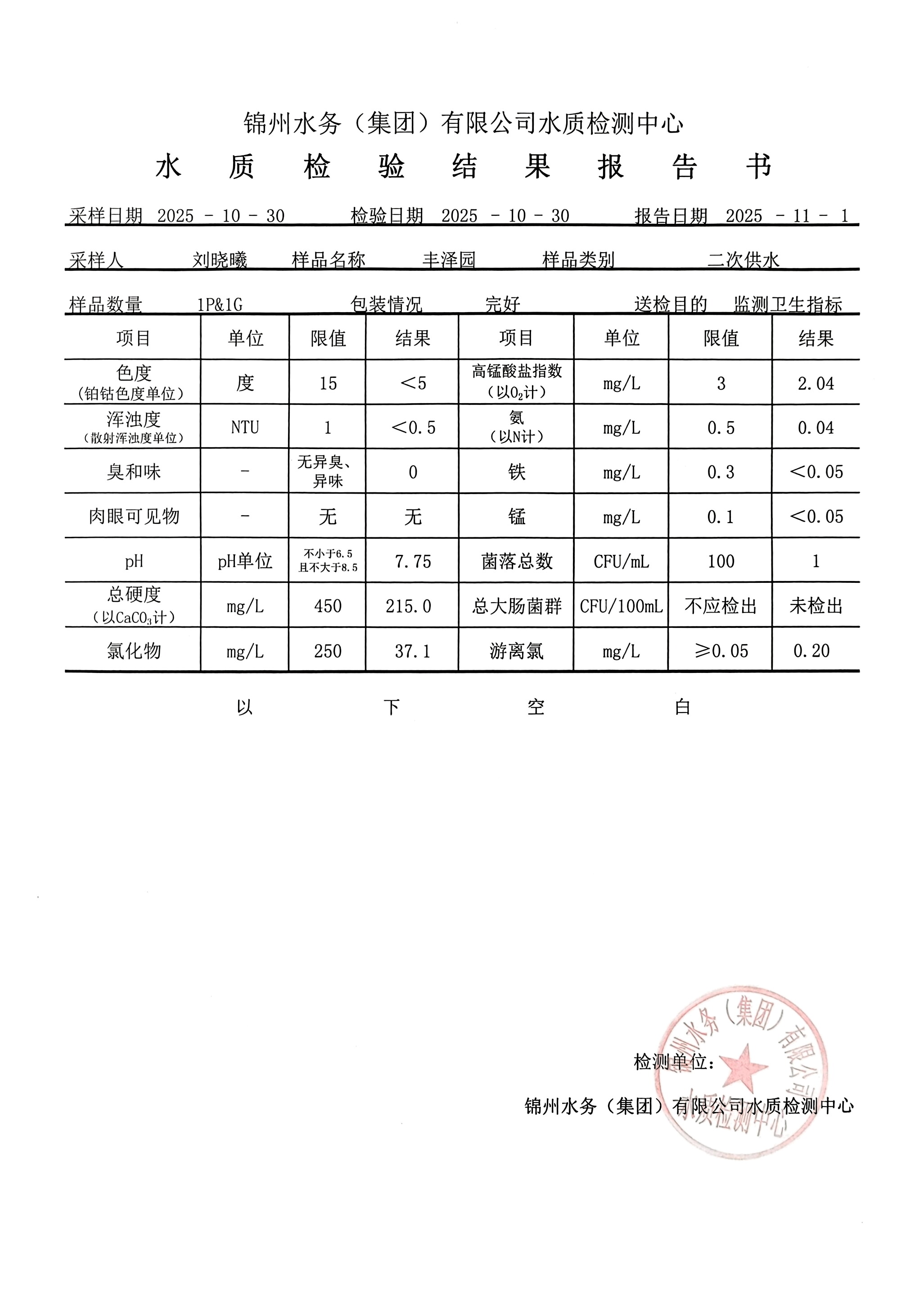 2025年10月31日—11月1日 二次供水检测报告水质报告